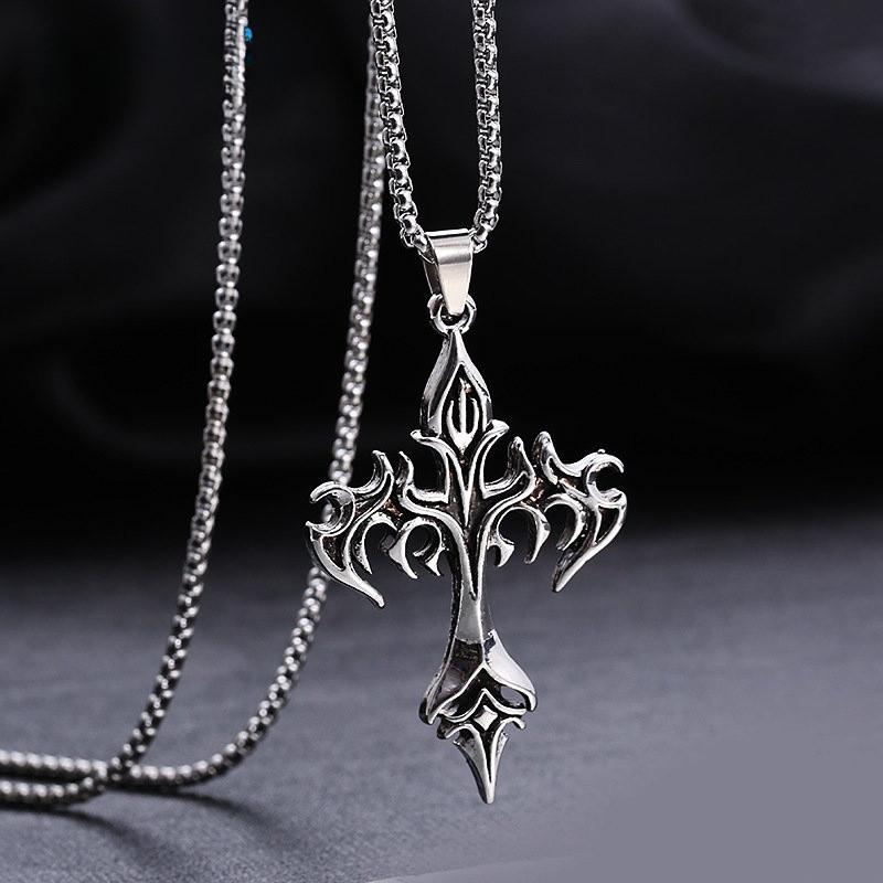 Mulher Homem Moda Vintage Chama Cruz Pingente Colar/Unisexo Gótico Punk Hip Hop De Corrente Longa De Aço Inoxidável/Acessórios De Jóias De Festa Popular