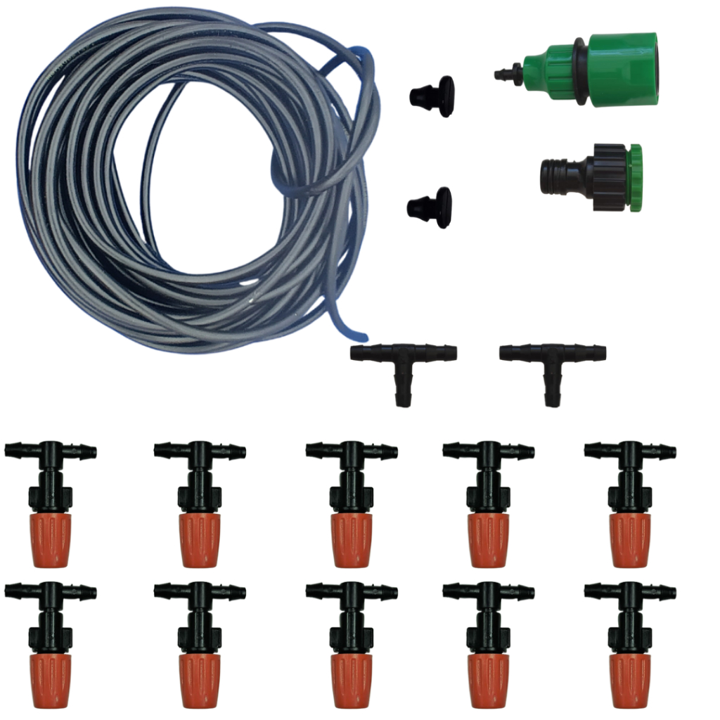 Kit de Irrigação Jardim Varanda Mangueira Refrigeração Névoa, Kit Completo de 10 Bicos, Tubo PVC 4/7mm de 10 metro