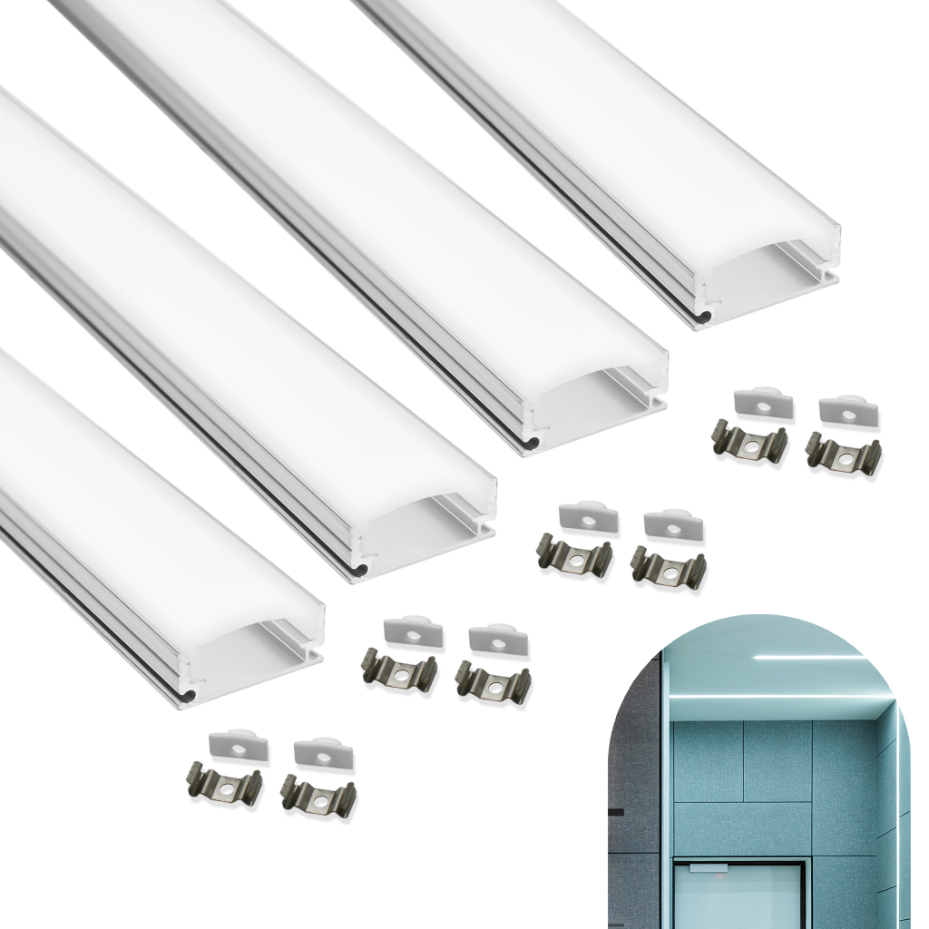 Kit 4 Metros Perfil Alumínio Sobrepor P/ Fita Led Slim