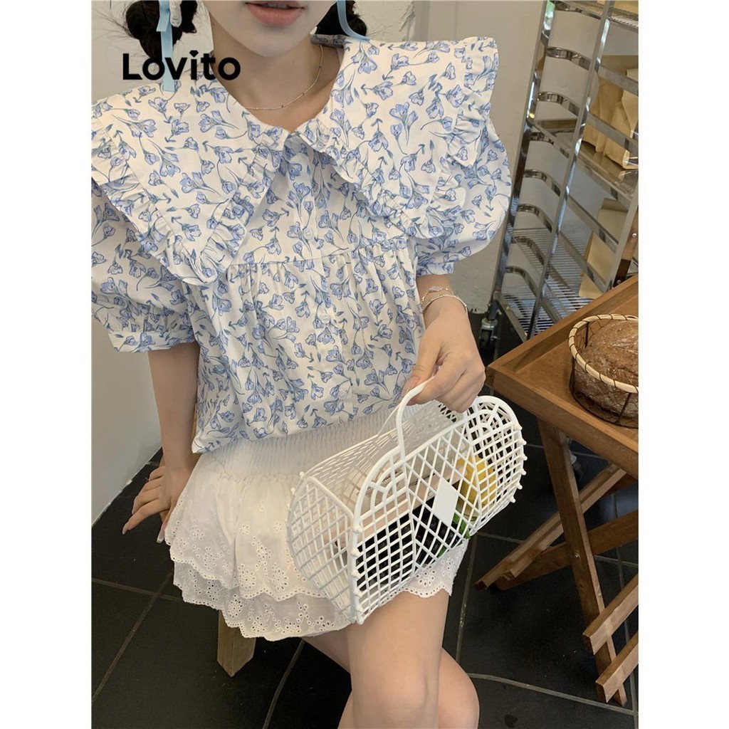 Lovito Blusa casual Ditsy floral com acabamento em alface para mulheres LNA57026