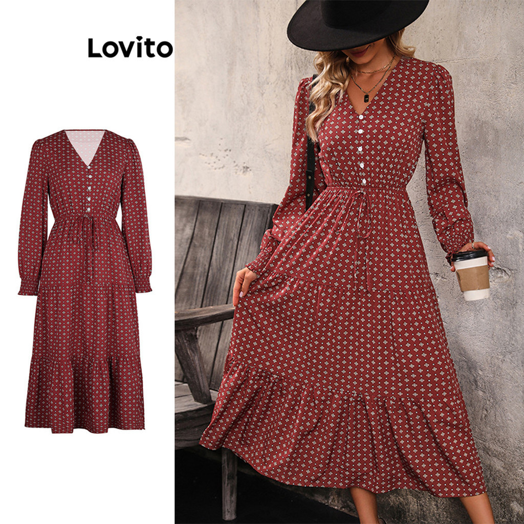 Lovito Vestido casual Ditsy floral com botões em camadas para mulheres LNL55132