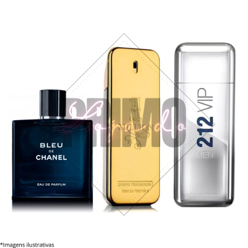 Kit 3 Perfumes Masculinos Bleu Million Vip Men 100ml Embalagem de Vidro Melhor Qualidade