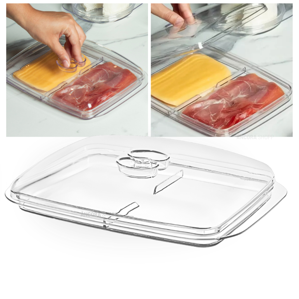 Porta Frios 2 Em 1 Acrílico Presunto Queijo Resistente 2 Divisórias Organizador Duplo Com Tampa Transparente Livre De BPA