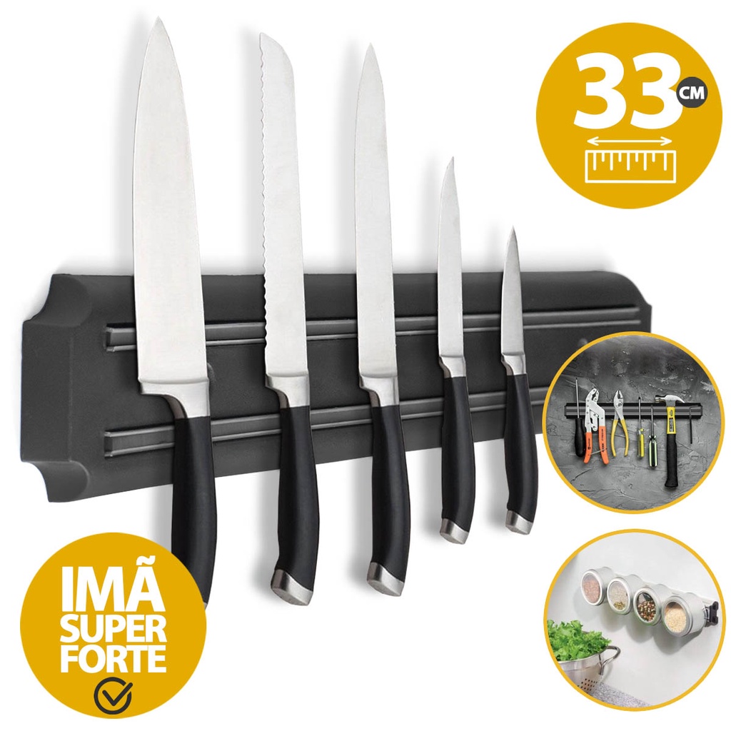 Kit 3x Uni Barra Magnética 33cm Suporte Imã Faca Ferramentas