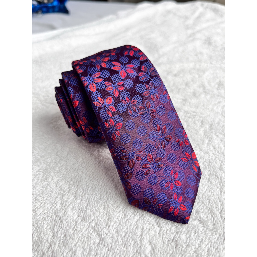 Gravata Floral Slim Fit Azul Royal- 2400 Fios
