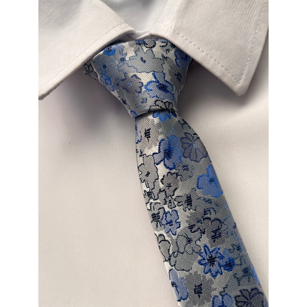 Gravata Slim Fit Floral Azul- 1200 Fios