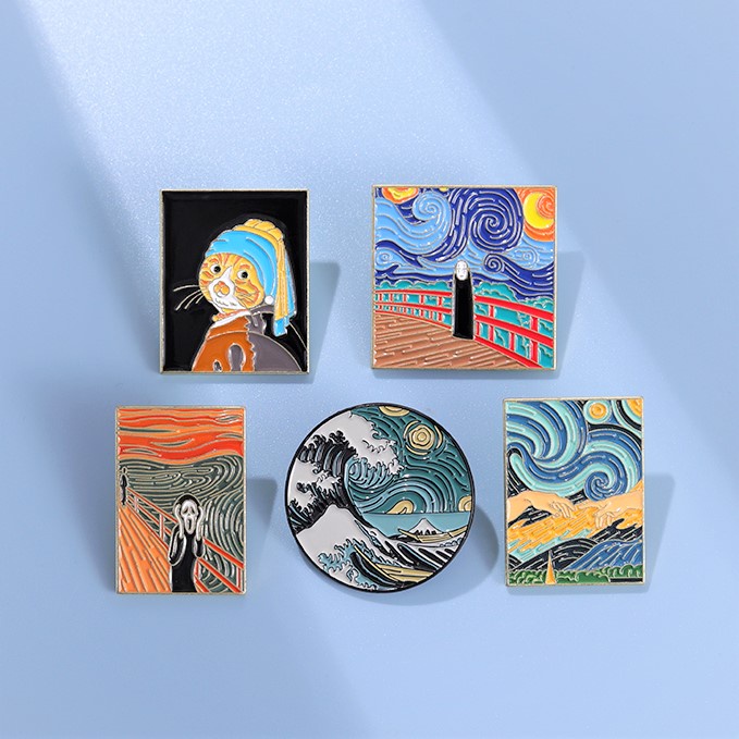 Pintura A Óleo Van Gogh Pin Esmalte Arte Girassol Broche Noturno Estrelado Pins Gato Lapela Crachás Jóias Presente Para Amigos