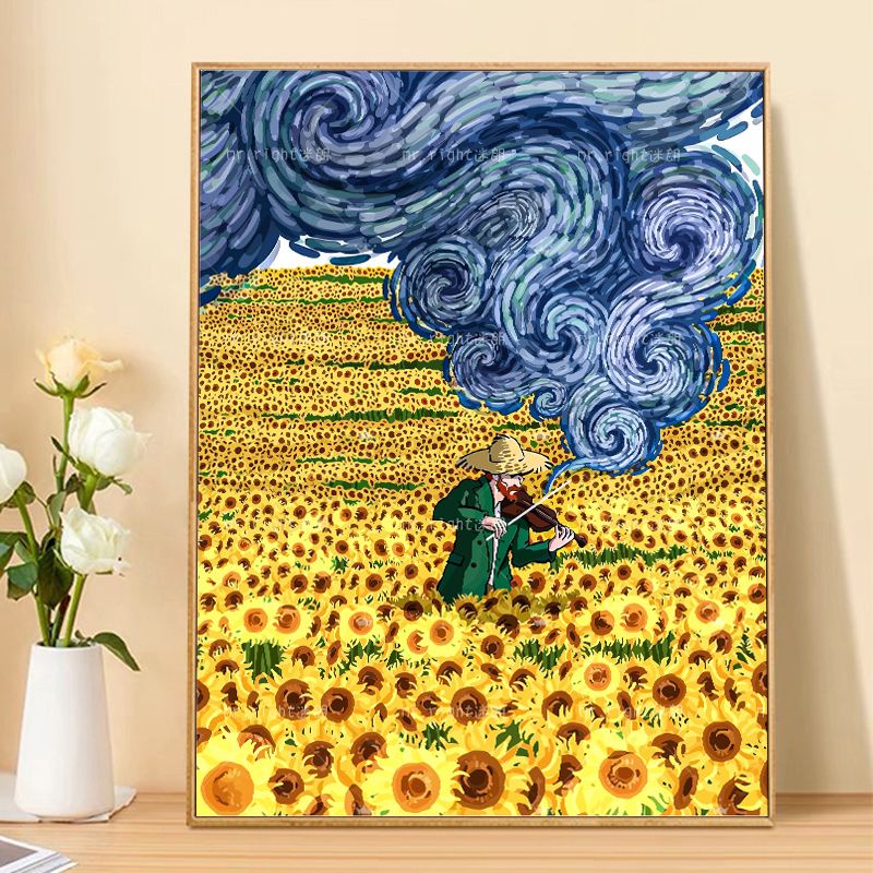 Desenho animado Van Gogh Impressão diy Pintura a óleo Digital Pintura a óleo colorido Preenchimento de pintura à mão Pintura a óleo acrílico de arte abstrata avançada