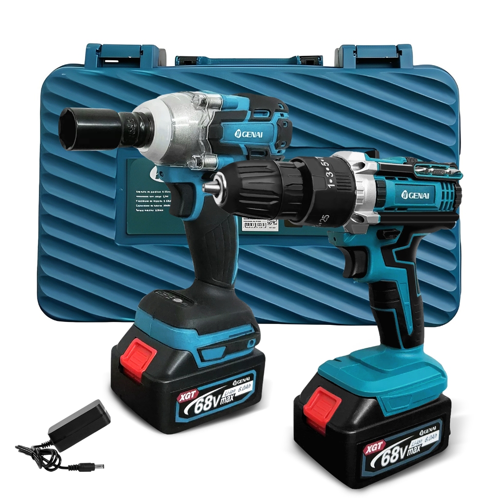 🔥【GENAI】🔥68v Profissional Kit chave de impacto + berbequim de impacto portátil recarregável com 2 Baterias