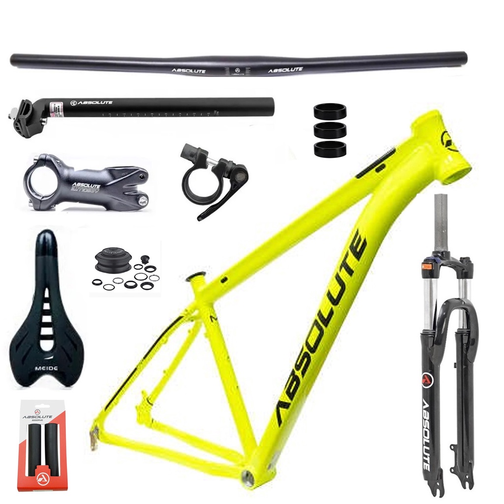 Quadro Absolute Nero Bicicleta Aro 29 Com Kit Guidão Suspensão Amarelo