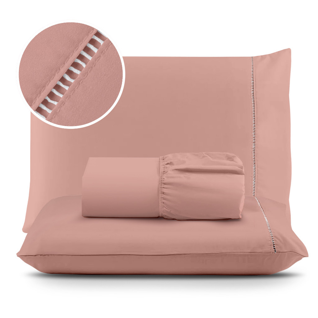 Jogo De Lençol Cama Casal Padrão Kit 03 Peças Micropercal Macio 400 Fios Acabamento em Ponto Palito 2,50m x 2,00m
