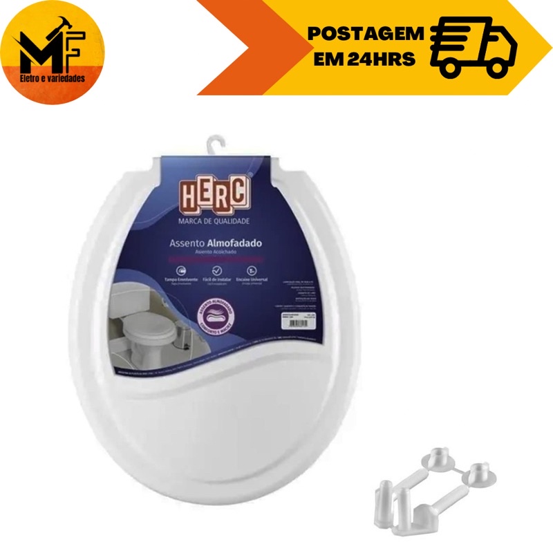 Tampa De Vaso Almofadado Assento Sanitário Oval Herc Barata Resistente Branco Universal