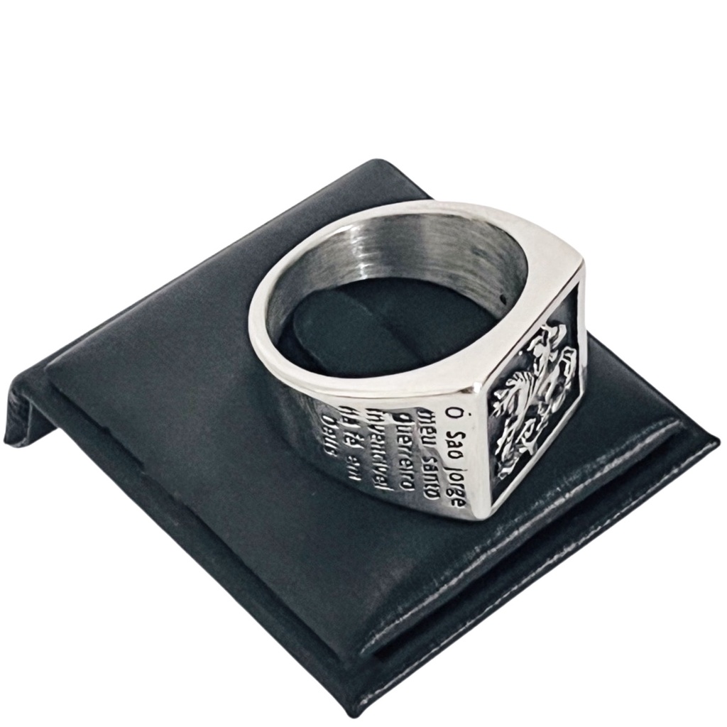 Anel Masculino São Jorge Oração em Português Aço Titânio Top Modelo Novo