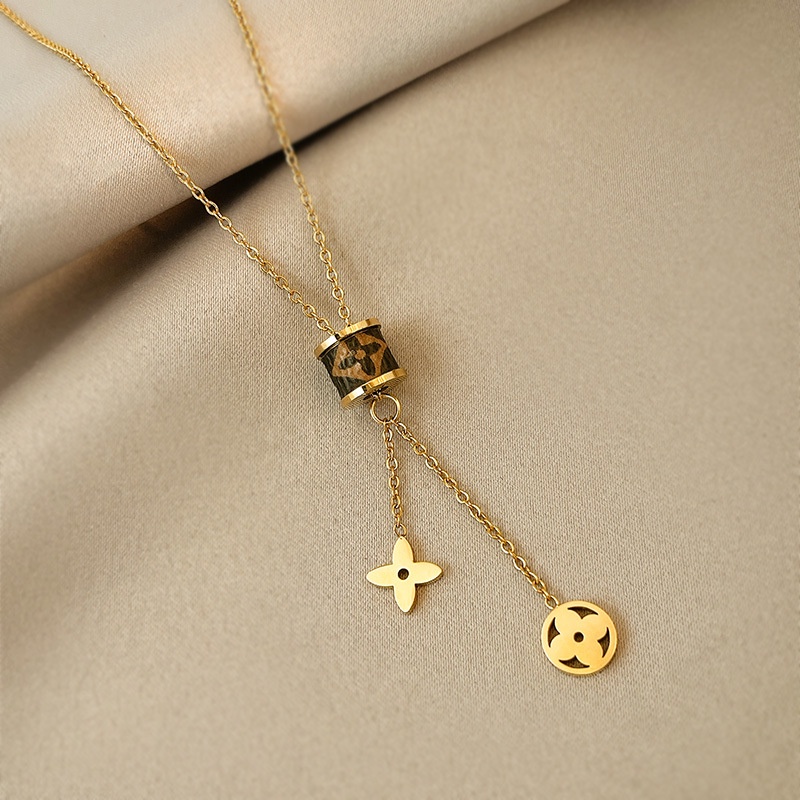 NS Novo Colar De Quatro Folhas De Trevo De Aço Titânio Fêmea Ainda Pingente