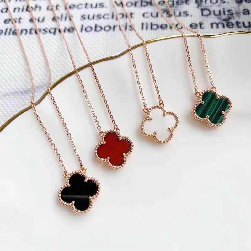 Colar de Trevo de Quatro Folhas de Alta Moda Lucky Clover Colar de Aço Titânio Rosa de Ouro Classe All-Match Commuter