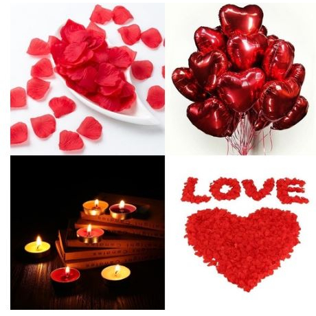 Decoração Dia dos Namorados Surpresa Romantica 200 Petalas/10 Velas /3 Balão Metalizado Coração