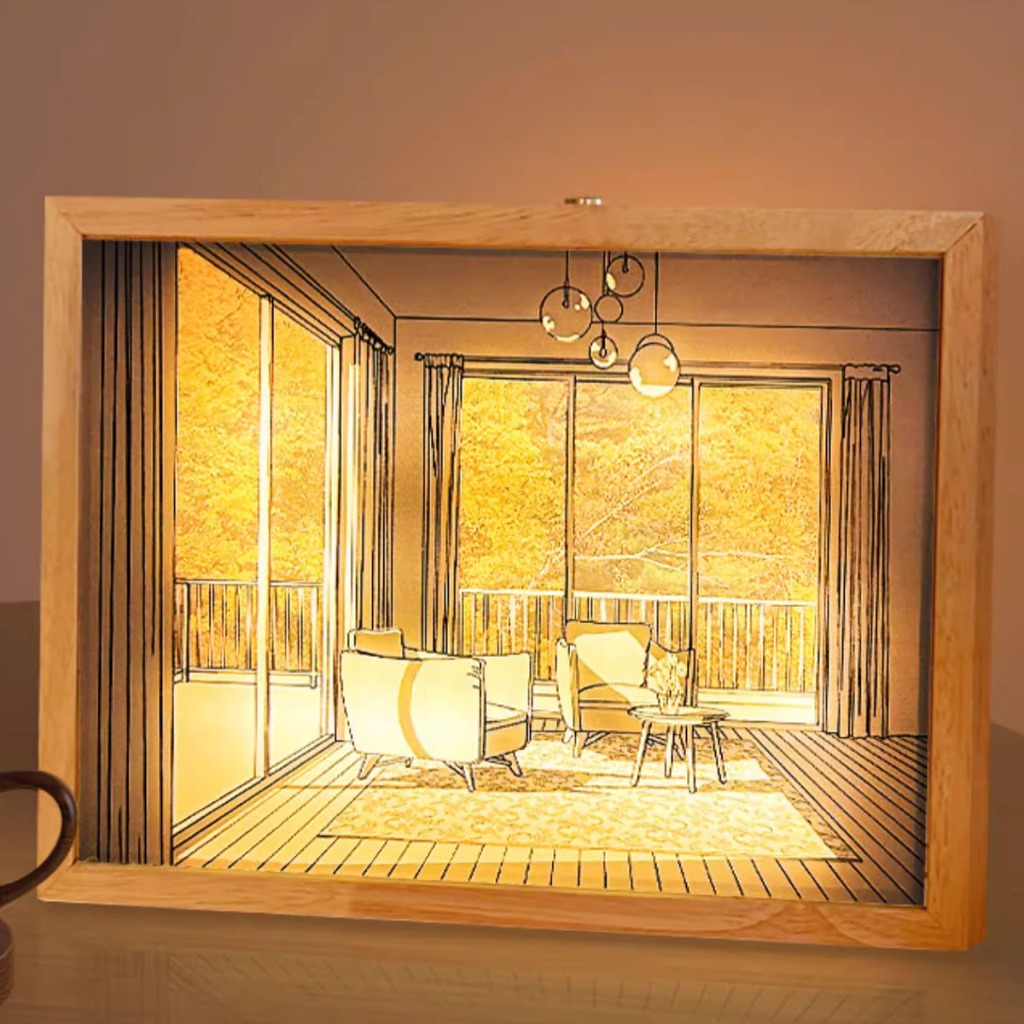 Quadro com Luzes LED, Candeeiro de Mesa, Luz Noturna, Molduras para Decoração 3 Cores Ajustável