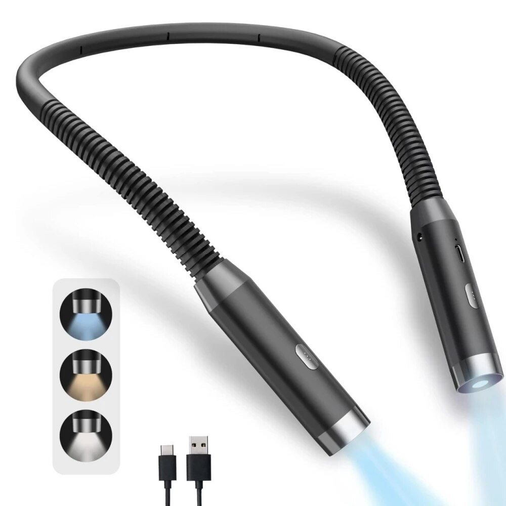1000mAh R Recarregável LED Leitura Pescoço Livro Luz USB 3 Cores Brilho Ajustável Proteção Para Os Olhos Noturna Ilumina