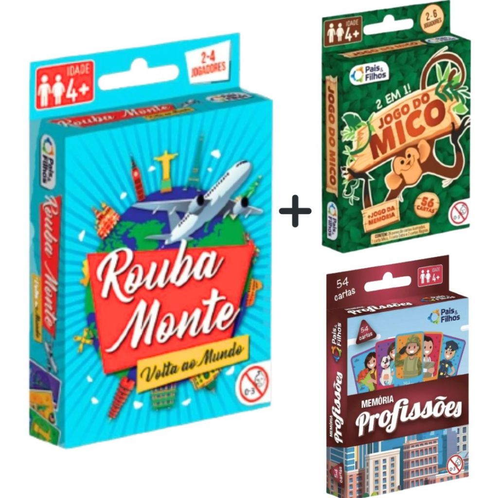 kit Jogos de Cartas Jogo Rouba Monte e Jogo da Memória + Mico -Diversão Promoção