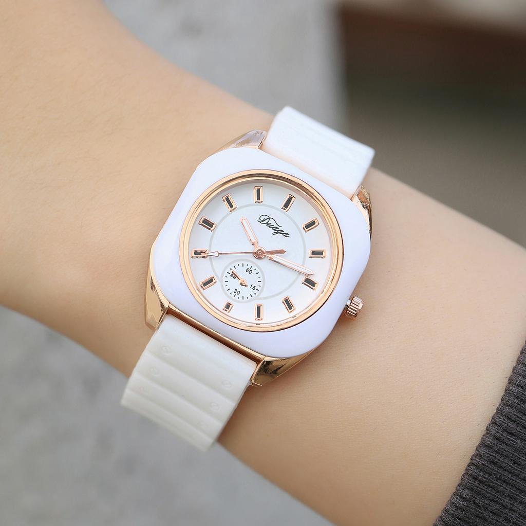 Relógio feminino simples e confortável de quartzo de Silicone estilo formal tendência Casual