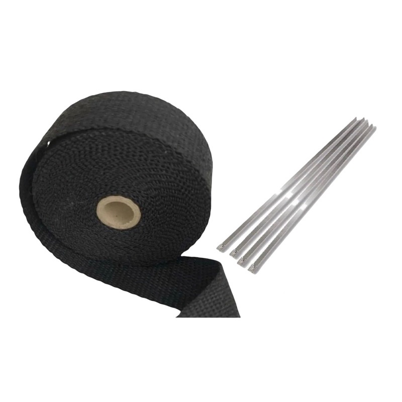 Fita Manta Termica Termotape Preta Para Escapamento Carro e Moto 10 Metros + 8 Abraçadeiras Aço Inox