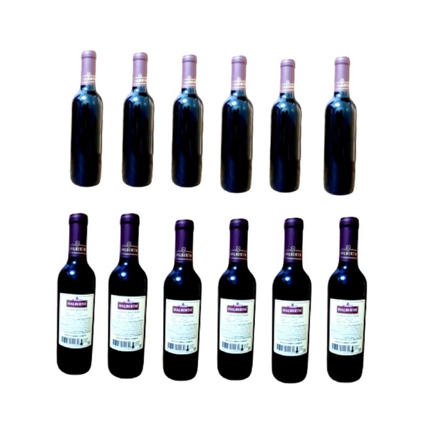 Kit com 12 Mini Vinhos Bordô Tinto de Mesa Suave Halberth 375ml