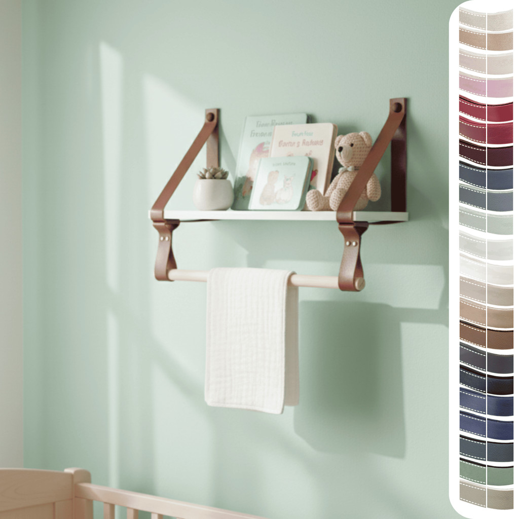 Par de Alças reforçadas com 4cm de largura feito em Material Sintético com Textura de Couro + Prateleira + 3 Cabideiros de parede - 1D