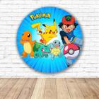 Capa para Painel Redondo Pokémon Tecido Sublimado Veste Fácil 1,50mx1,50m Festa Aniversário