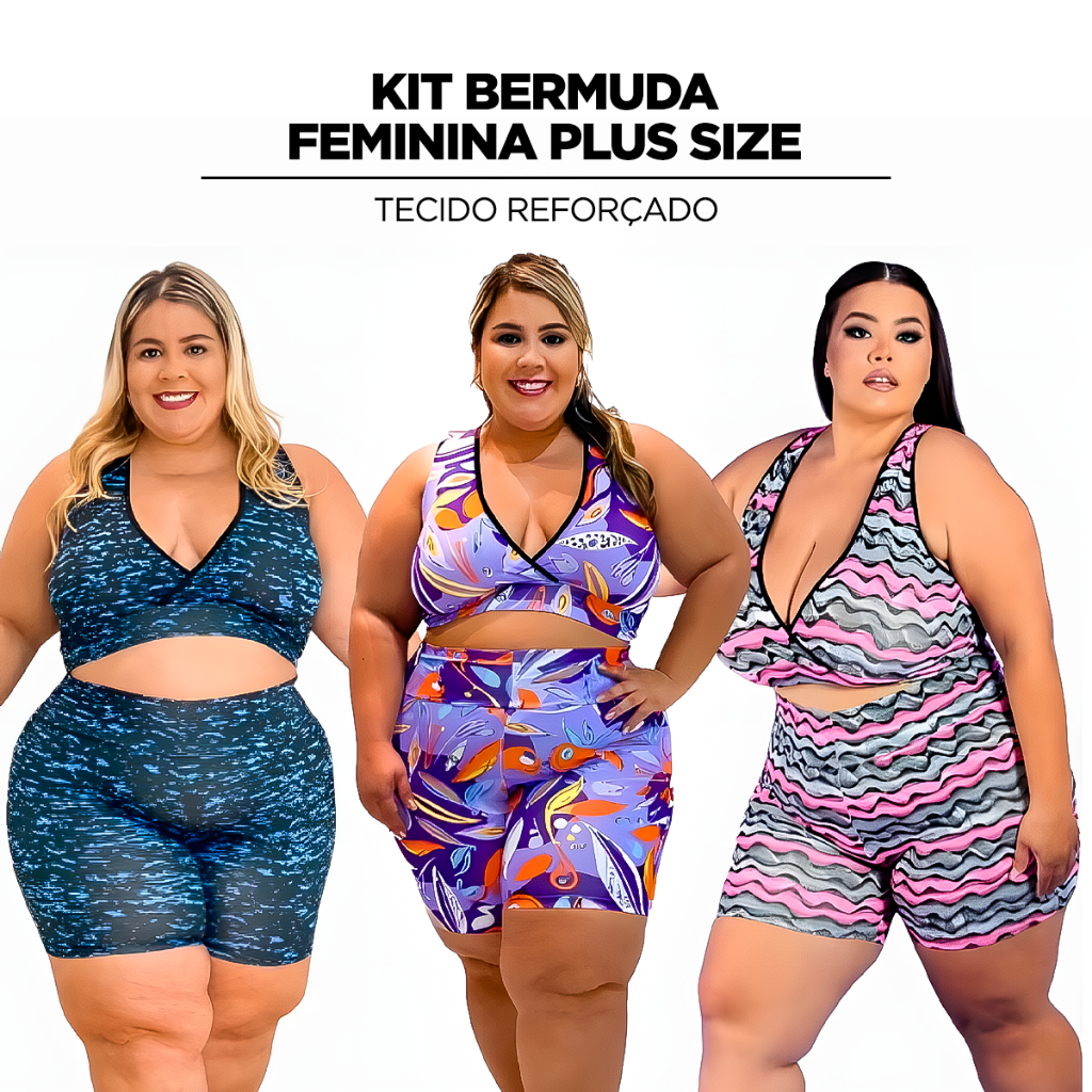 Kit Bermuda Plus Size Feminina Suplex G1 G2 G3 Cintura Alta