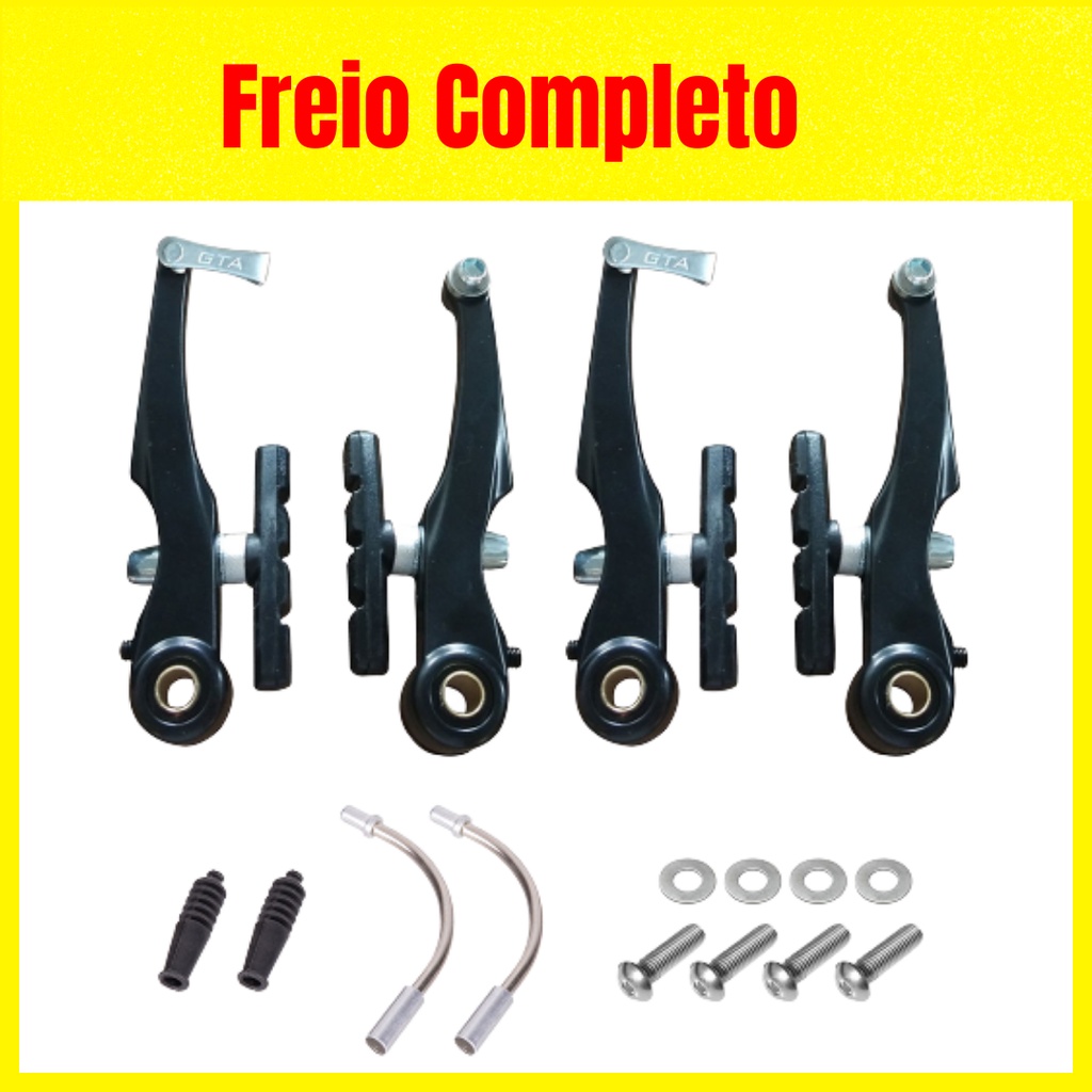 Jogo de Freio V-brake Alumínio WG Sports/ Shiver/ Logan Mtb Bike Dianteiro e Traseiro Bicicleta Kit Preto Polido