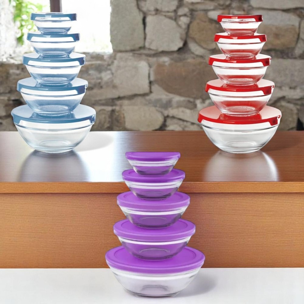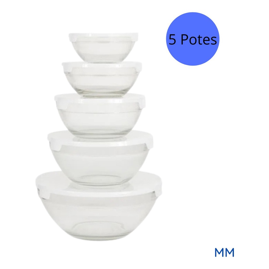 Conjunto 5 Potes Tigela Vidro Redondo Hermeticos C/ Tampa Organizadores De Alimentos Utensilios