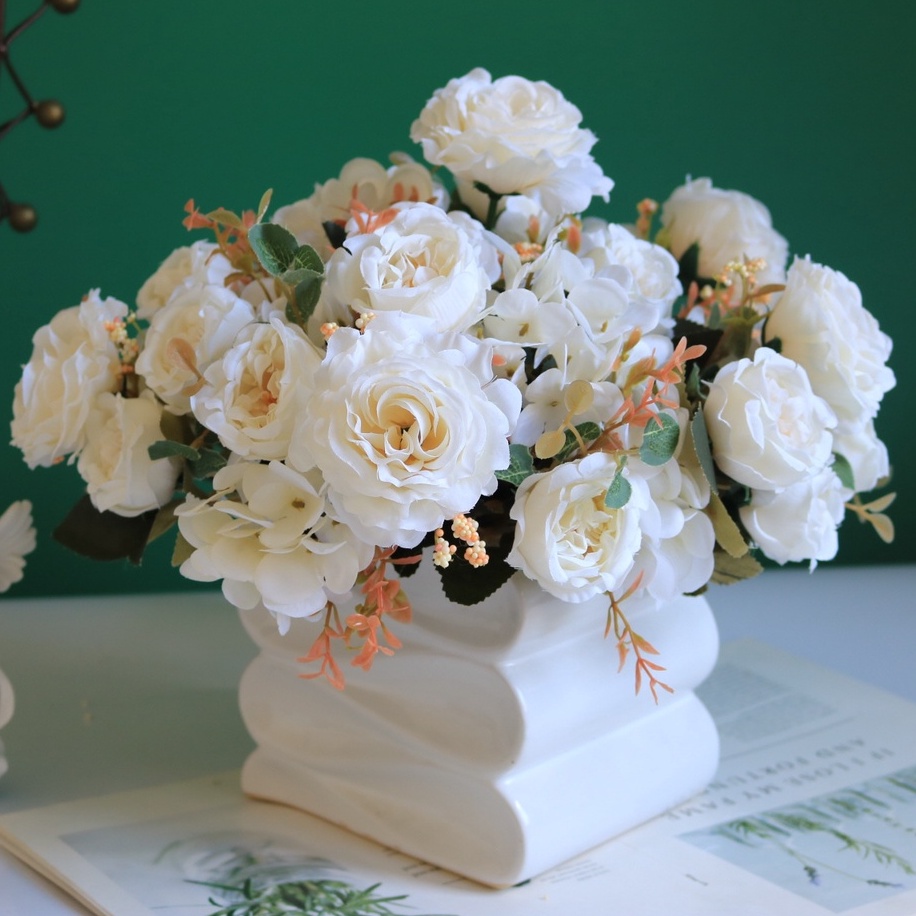 Dualswish Retro Peony Hydrangea rose Combinação Estética Flores Artificiais Decoração De Dormitório Casamento Casa