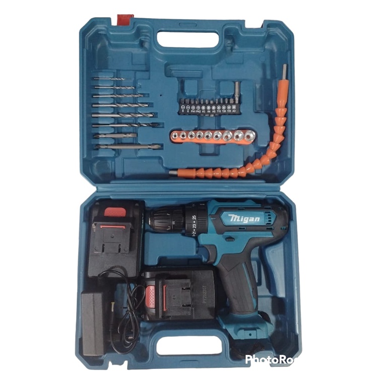 parafusadeira furadeira 36v com duas baterias recarregáveis kit com 24pecas e maleta de transporte mega promoção