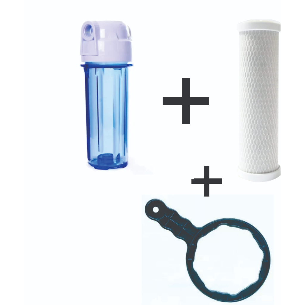 Filtro Cavalete e Caixa d'Água 10 Rosca 3/4 - AZUL + refil carbon block 9 + ferramenta KIT
