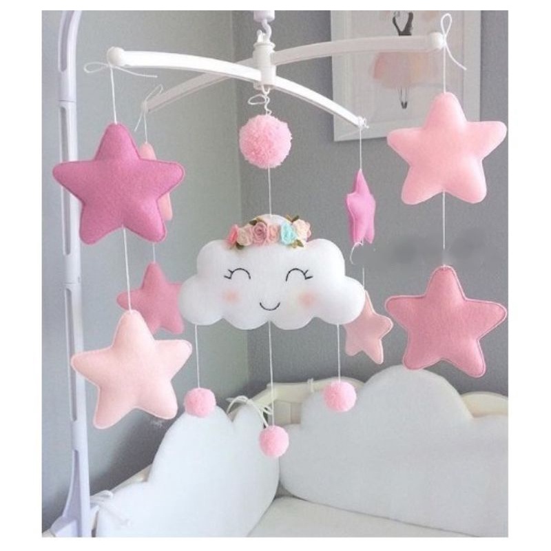 Móbile Músical e Giratório Para Berço Nuvem Chuva de Amor Rosa Menina