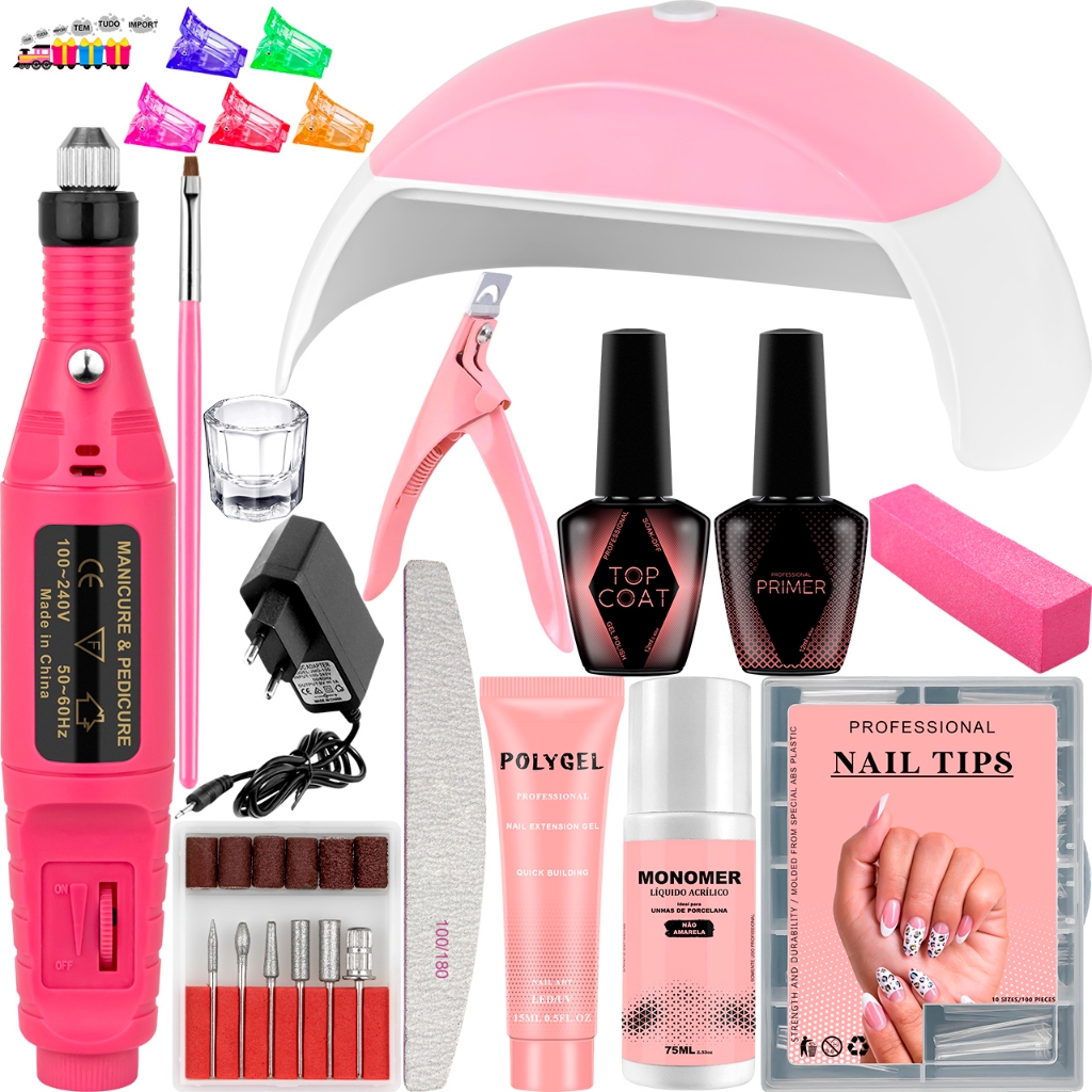 Kit Profissional de Unhas Polygel Lixadeira Caneta Cabine de Unha Estufa LED UV Sun 5 Manicure