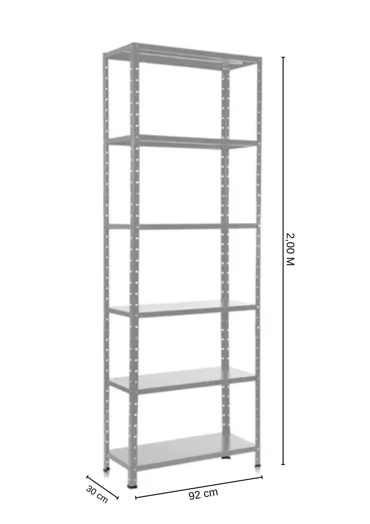Estante / Armario de Aço 30cm 6 Bandejas Cinza Suporta 120kg