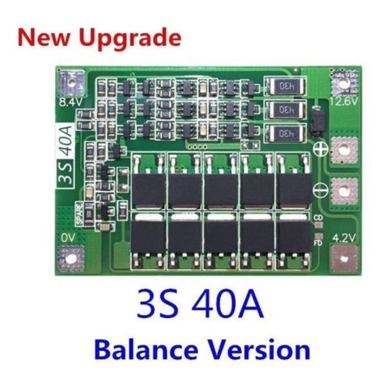Placa Bms Proteção 3s 40a Balanceamento 11,1V 12.6v para Bateria Lítio 18650 Li-ion Lipo 12V (3x3,7v)