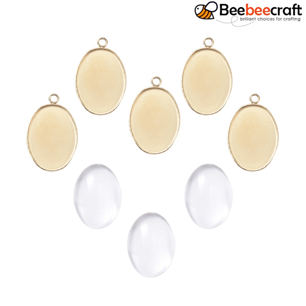 5 ~ 10 Conjunto De Pingentes De Faça-Você-Mesmo Com 304 Ajustes De Cabochon De Aço Inoxidável E Cabochões De Vidro Oval Transparente Ajuste Dourado : 22x14mm : 18x13x4 5mm