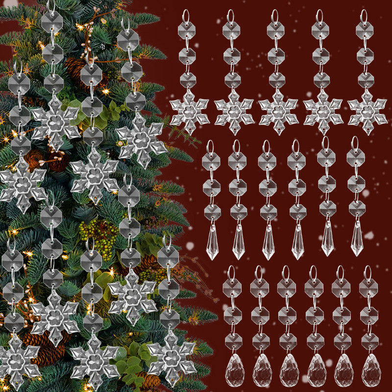 Produtos De Decoração De Natal-5 Peças De Contas De Cristal Acrílico Pendan-Pingentes De Gelo De Floco De Neve-Enfeite D
