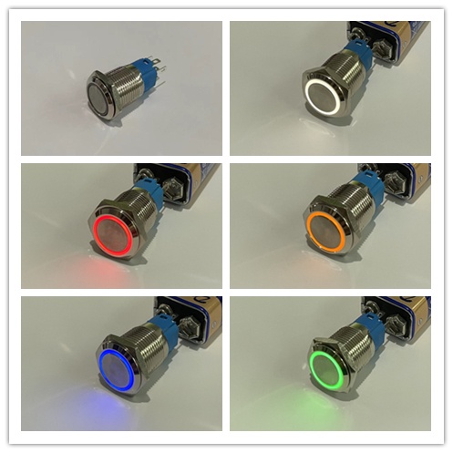16mm Concha Preta Personalização De Óxido De Metal Botão De Apertar Lâmpada Escotilha/Momentary Fãs Luz Chifre Para Símbolos De Carro Vermelho Azul Verde