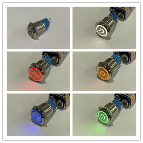 16mm Símbolos Personalizáveis Interruptor De Botão De Pressão De Metal Com Lâmpada LED Redondo Plano Para Momentário De Carro/Escotilha 12V 24V