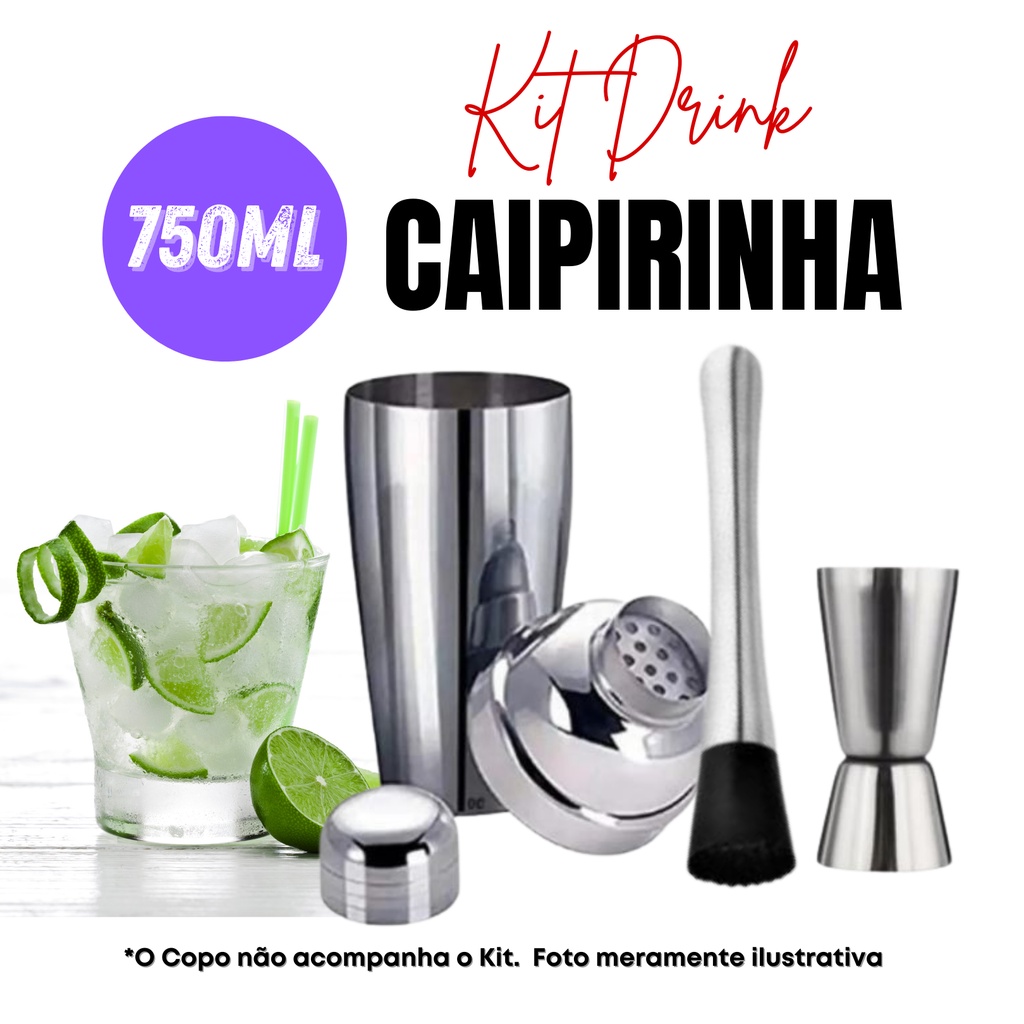 Kit Caipirinha Coqueteleira Profissional Drinks + dosador + Socador 750 ml Inox Envio em 24h
