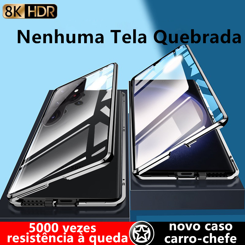 Capa para Samsung Galaxy S23 Ultra Plus S23+ Capinha de cellular Caixa do telefone vidro magnético de dupla face com protetor de lente de câmera de metal + trava de segurança com trava à prova de choque Case