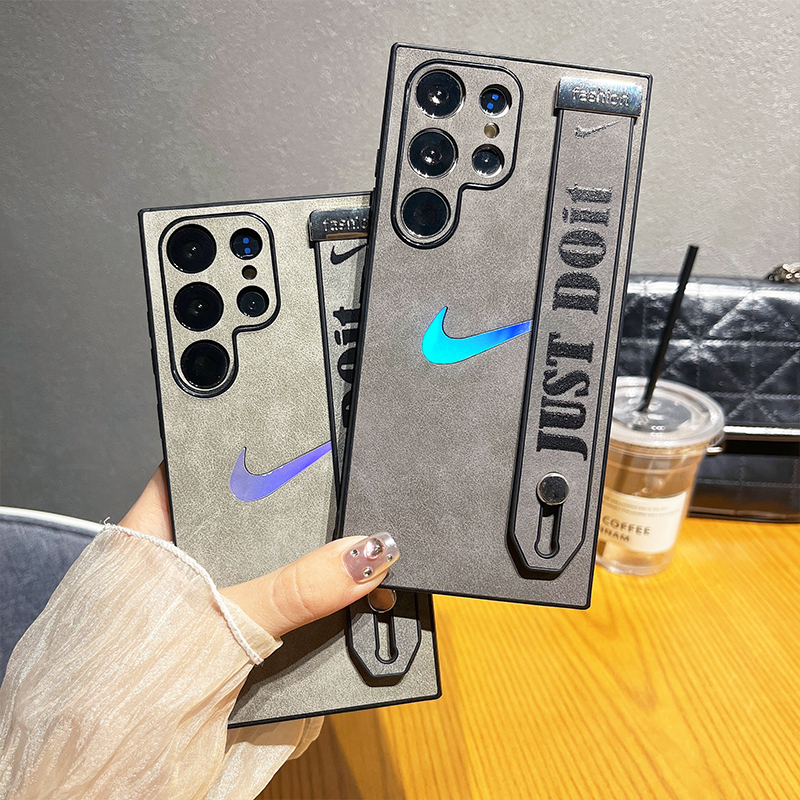 Marca De Luxo Gancho A Laser De Couro Matte Velvet NK Estojo De Suporte De Pulseira Para Samsung Galaxy S23 S22 Ultra Fashion Wristband Stand Porta Capa De Telefone À Prova De Choque