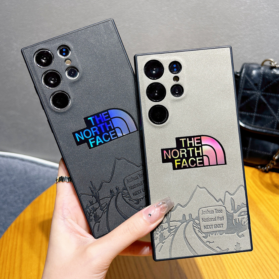 Marca De Luxo North Face Matte Carcaça A Laser De Couro Para Samsung Galaxy S23 S22 Ultra Fashion Square Capa Telefone À Prova De Choque