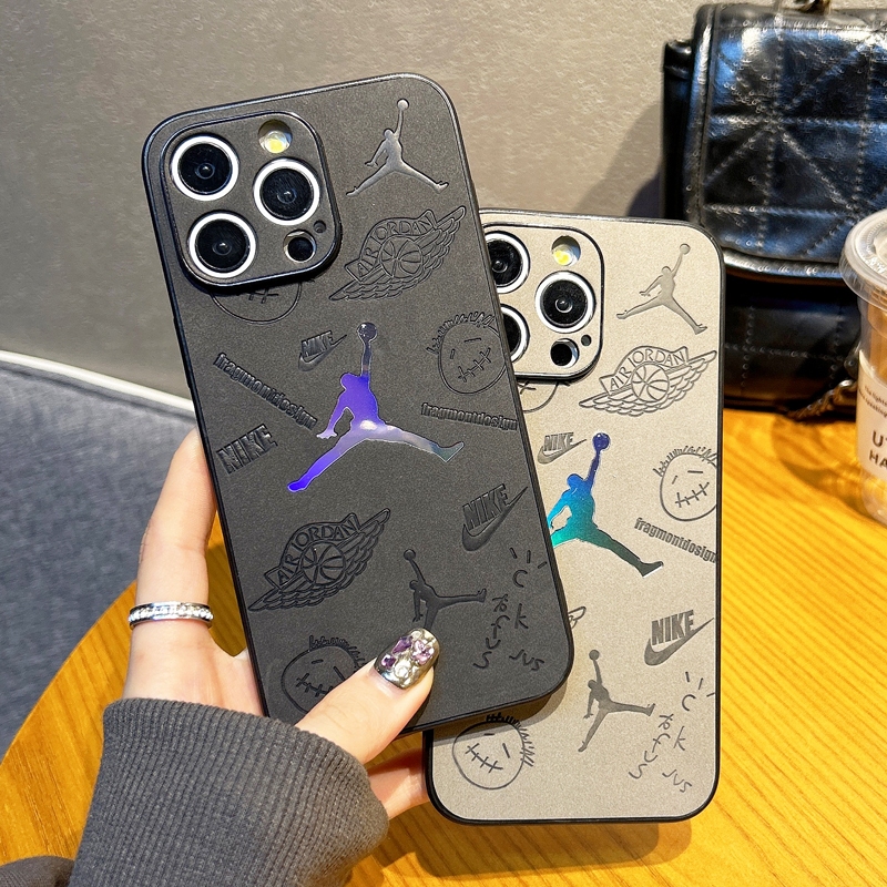 Marca De Luxo Couro Matte Embossing Gancho Laser Jordânia Para iphone 15 14 13 12 11 Pro Max Fashion Square Capa De Telefone À Prova De Choque