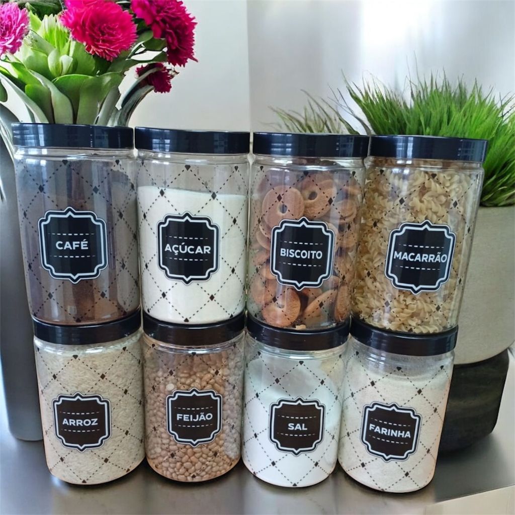 [KIT] 8 (OITO) POTES DE MANTIMENTO - (LANÇAMENTO) MACARRÃO, ARROZ, FEIJÃO, FARINHA, BISCOITO, CAFE, AÇÚCAR, SAL 1.700ML