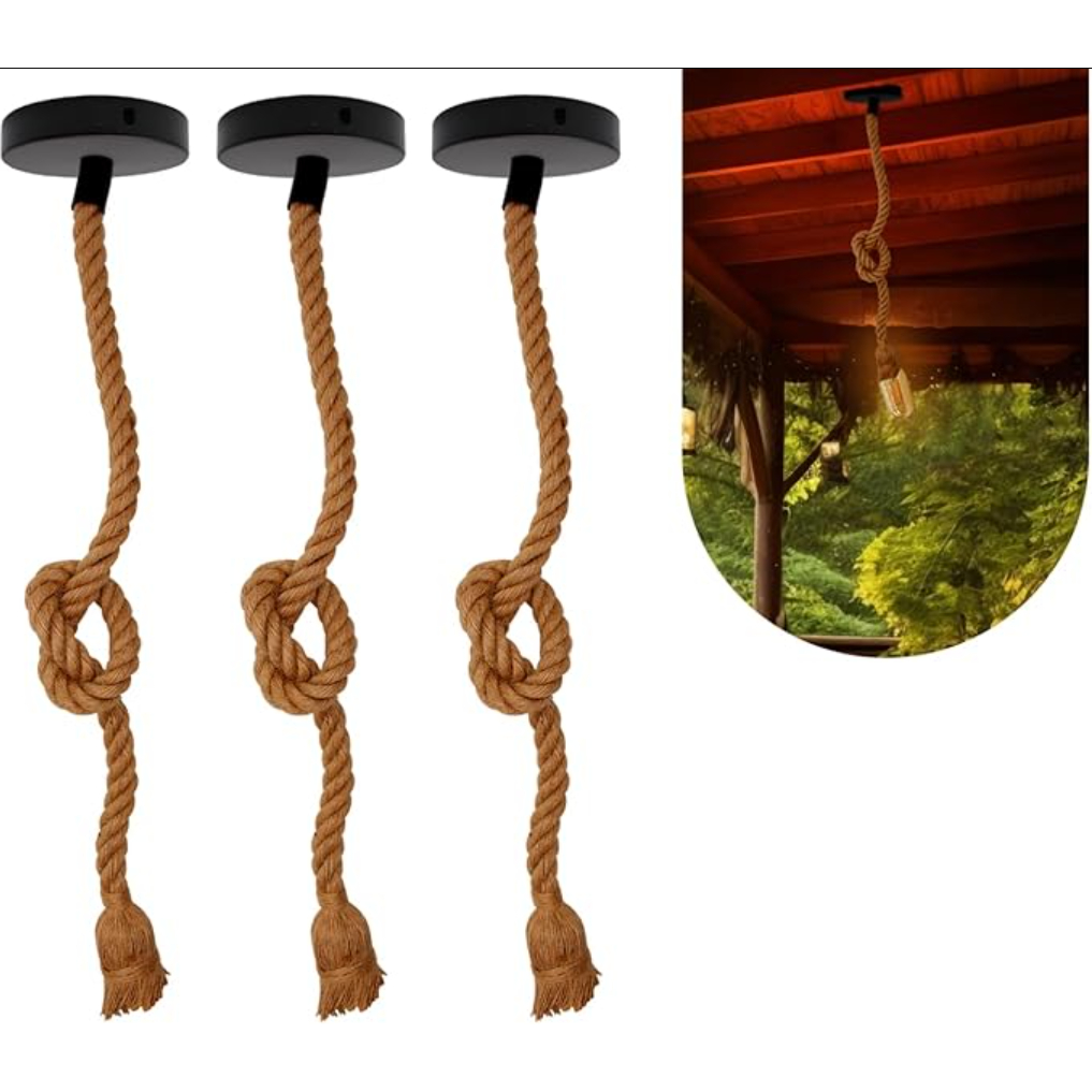 Kit 3 Pendente Lustre Luminária Vintage Corda Sisal Retro Rústico Com Soquete Bocal E27 Canopla De Metal Fio Para Teto
