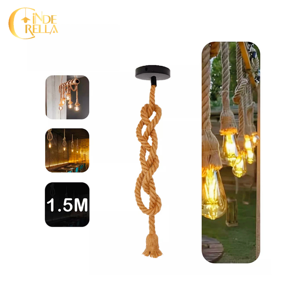 Kit 1 A 4 Luminária Teto Pendente Corda 1,5 Metro Rústico Sisal Retro Vintage Bar Restaurante